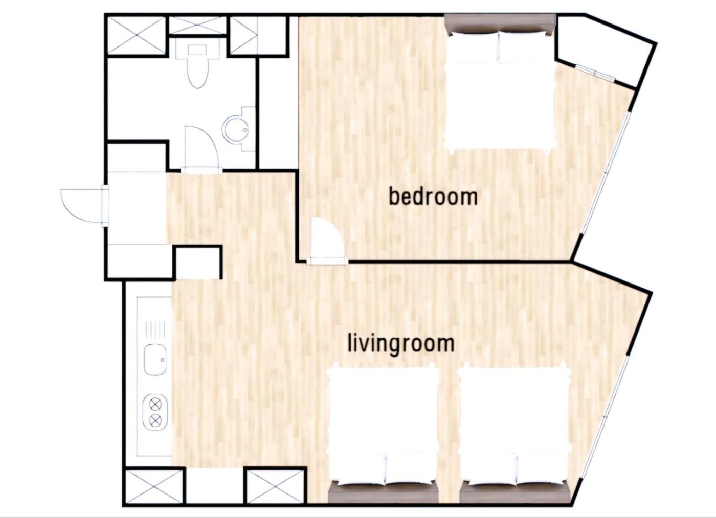 One-Bedroom Apartment. Featuring a private entrance, this air-conditioned apartment comprises a kitchen, 1 bedroom and 1 bathroom with a walk-in shower and a hairdryer. In the kitchen, guests will find a stovetop, a refrigerator, kitchenware and a microwave. The apartment features parquet floors, a seating area with a flat-screen TV with streaming services, a washing machine, soundproof walls, as well as a dining area. The unit offers 3 beds. ;
