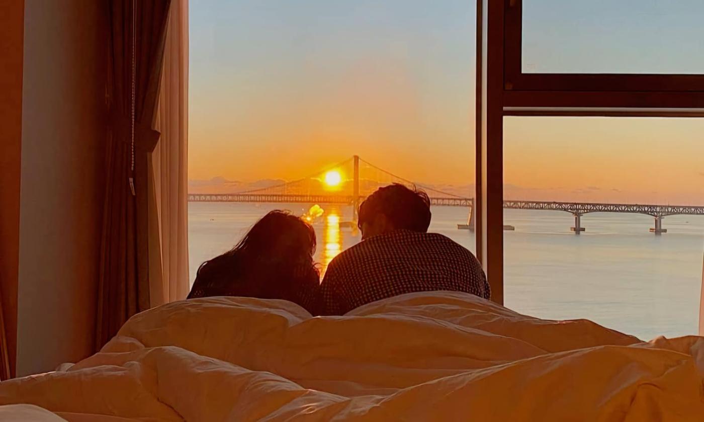Gwangan view of the sea from the beach is a beachfront property located in Busan, 100 metres from Gwangalli Beach and 2.6 km from Kyungsung University. Complimentary WiFi is provided throughout the property and private parking is available on site. The accommodation provides a lift, and luggage storage for guests.