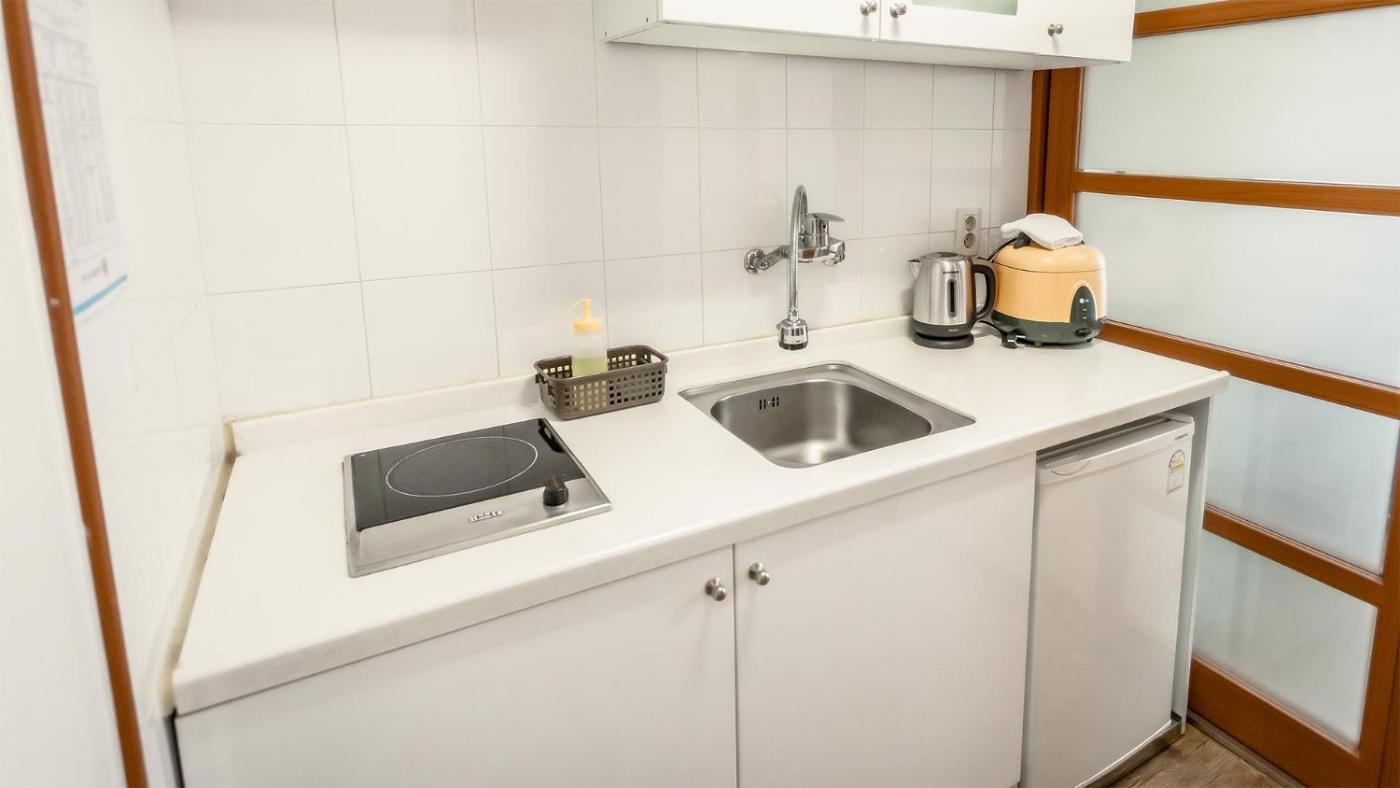 Duplex Studio. This duplex studio features Ondol, Korean traditional heated underflooring. The room has a balcony, flat-screen TV and kitchenware. ;