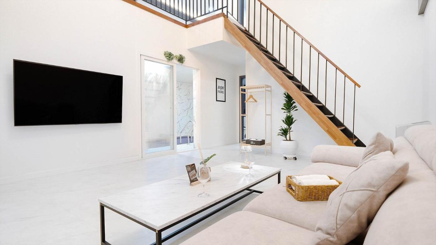 Studio 9. The hot tub is the standout feature of this holiday home. This air-conditioned holiday home comes with 1 living room, 1 separate bedroom and 1 bathroom with a bidet. This holiday home has an electric kettle, a barbecue and a TV. The unit has 1 bed. ;