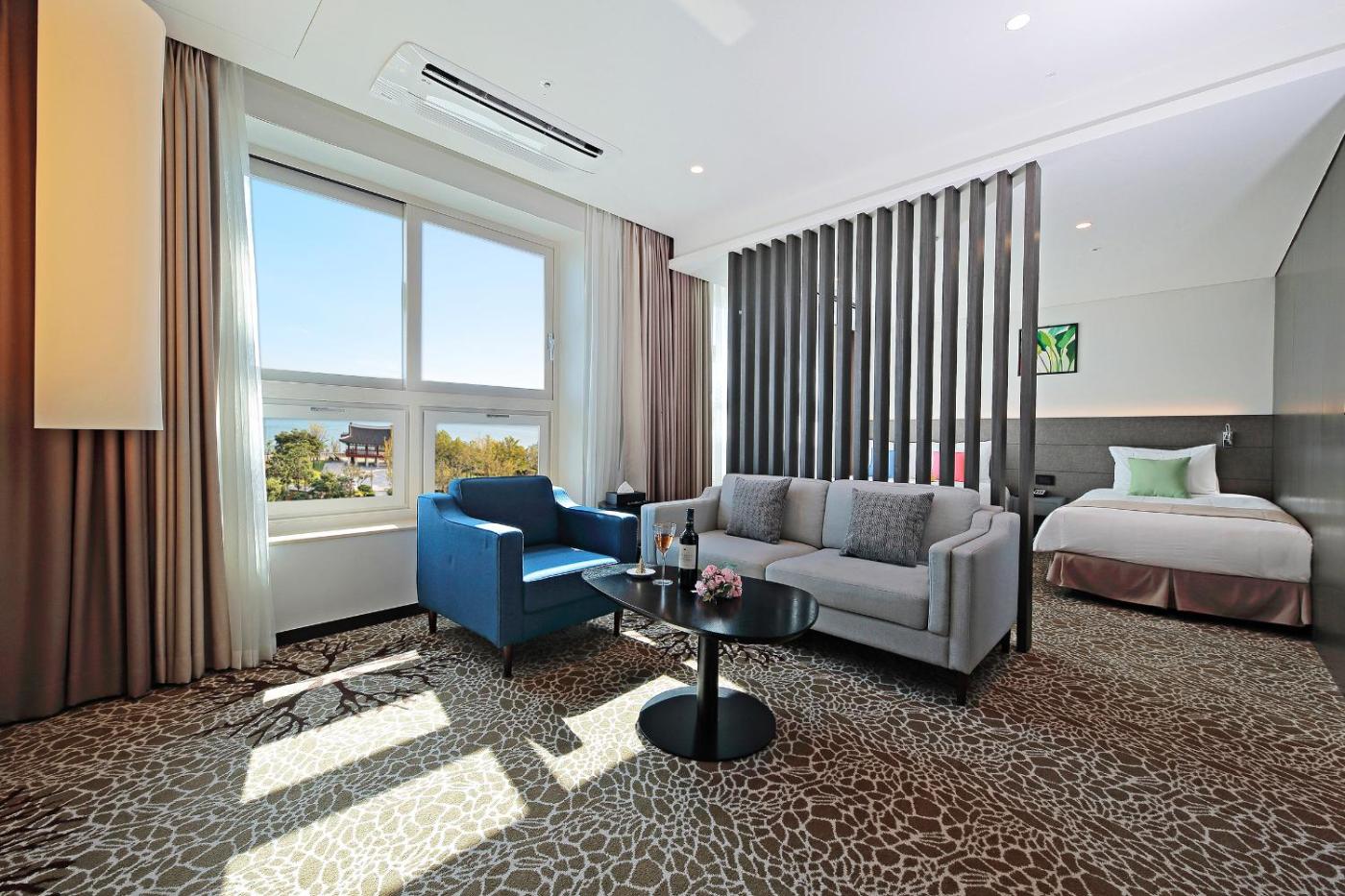Korean Style Ondol Room. Featuring bathrobes, this double room includes a private bathroom with a shower, a bidet and a hairdryer. The air-conditioned double room features a flat-screen TV, soundproof walls, a tea and coffee maker, a wardrobe as well as sea views. The unit has 2 futons. ;