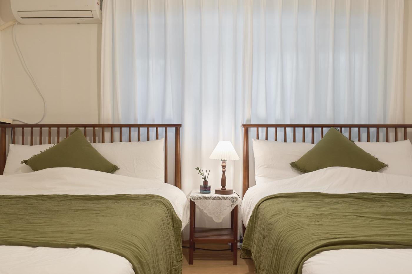 Two-Bedroom Apartment. This apartment features 1 living room, 2 separate bedrooms and 1 bathroom with a shower and free toiletries. The apartments kitchen, which has a refrigerator and a microwave, is available for cooking and storing food. The apartment features air conditioning, a washing machine, a dining area, an electric kettle and a flat-screen TV. The unit has 3 beds.