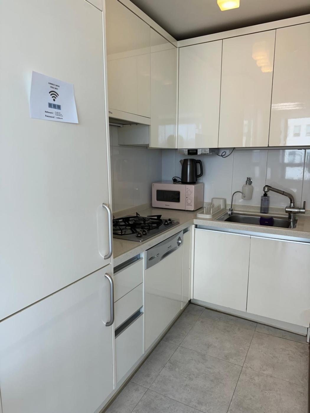 One-Bedroom Apartment with City View. The air-conditioned apartment has 1 bedroom and 1 bathroom with a bath or a shower and a hairdryer. The well-fitted kitchen features a stovetop, a refrigerator, a microwave and an electric kettle. The apartment features a flat-screen TV with streaming services, a washing machine, a dining area, a wardrobe as well as mountain views. The unit has 2 beds.