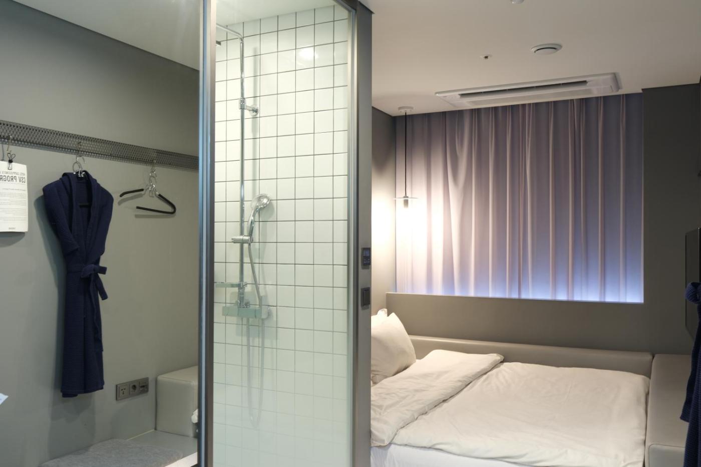 Double Room with 1pax. Featuring bathrobes, this double room includes a private bathroom with a shower, a bidet and a hairdryer. The air-conditioned double room features a flat-screen TV with cable channels, a washing machine, soundproof walls, a tea and coffee maker as well as city views. The unit has 1 bed. ;