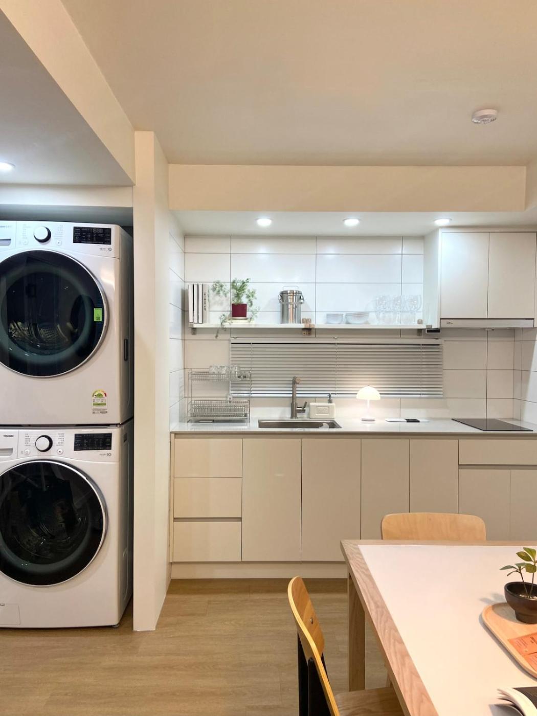 Two-Bedroom Apartment. The air-conditioned apartment has 1 bedroom, 1 bathroom with a hairdryer and a kitchen. Guests can make meals in the fully equipped kitchen that features a refrigerator, kitchenware and a microwave. The apartment features a washing machine, a dining area, tumble dryer, heating, as well as a flat-screen TV. The unit has 2 beds.