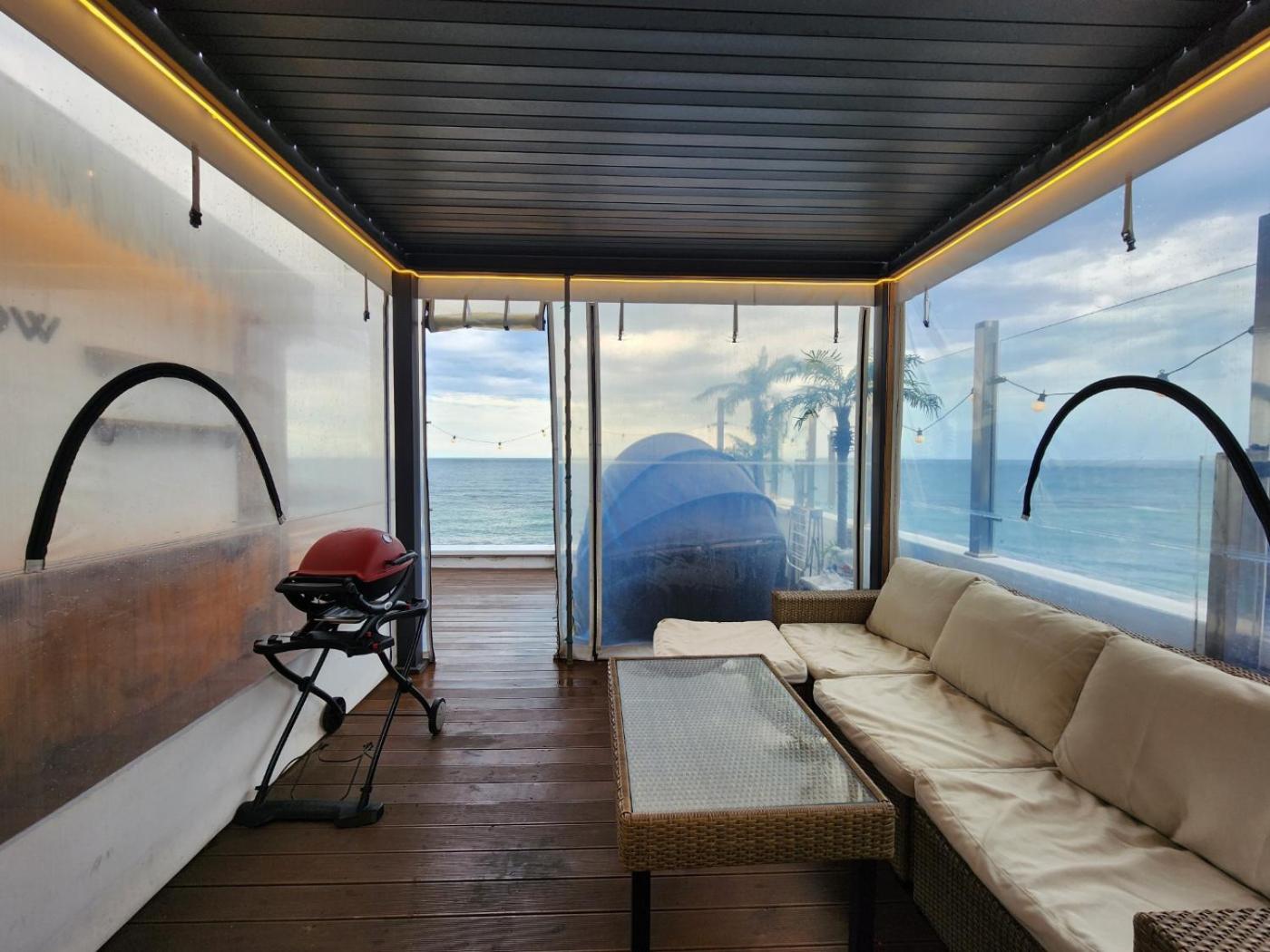 Suite with Sea View. The fireplace is a top feature of this suite. Boasting a private entrance, this air-conditioned suite includes 1 living room, 1 separate bedroom and 1 bathroom with a walk-in shower and a bath. Guests will find a refrigerator, kitchenware and a microwave in the kitchen. The suite also features a barbecue. The spacious suite offers a flat-screen TV with streaming services, soundproof walls, a coffee machine, a seating area as well as sea views. The unit has 1 bed. ;